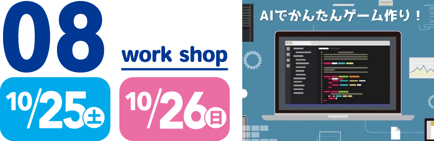 大学生がAIを使って作ったゲームを体験し、ゲームの構造や作り方を学習します。 子供たちが新しいゲームを考え、作る過程を補助しながら、 AIの簡単さと進歩を実感してもらう創作ワークショップです。 ※兄弟・姉妹で参加される(複数名で申込)場合は、対象年齢以下のお子様の参加も可能です。